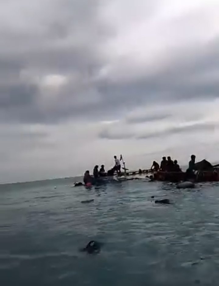 Dalam video tersebut, tampak beberapa orang berada di atas perahu yang masih mengapung, sementara lainnya berada di air menunggu pertolongan. Sejumlah perahu kecil kemudian datang mendekat untuk melakukan evakuasi. Proses penyelamatan terlihat dilakukan secara bertahap, dengan korban dipindahkan ke perahu lain yang lebih aman.